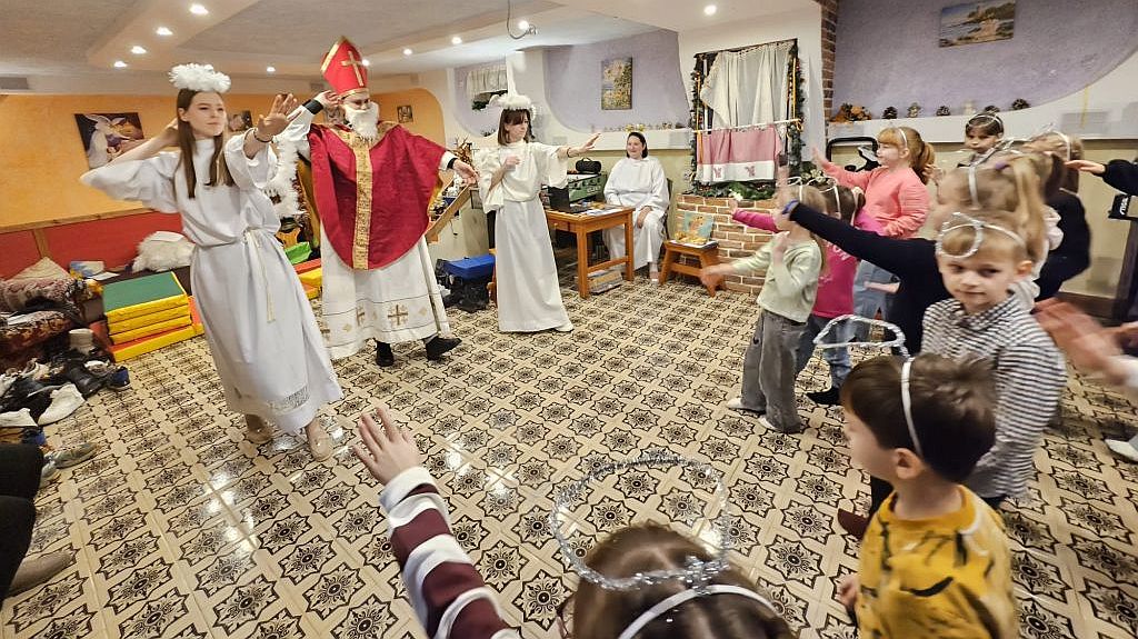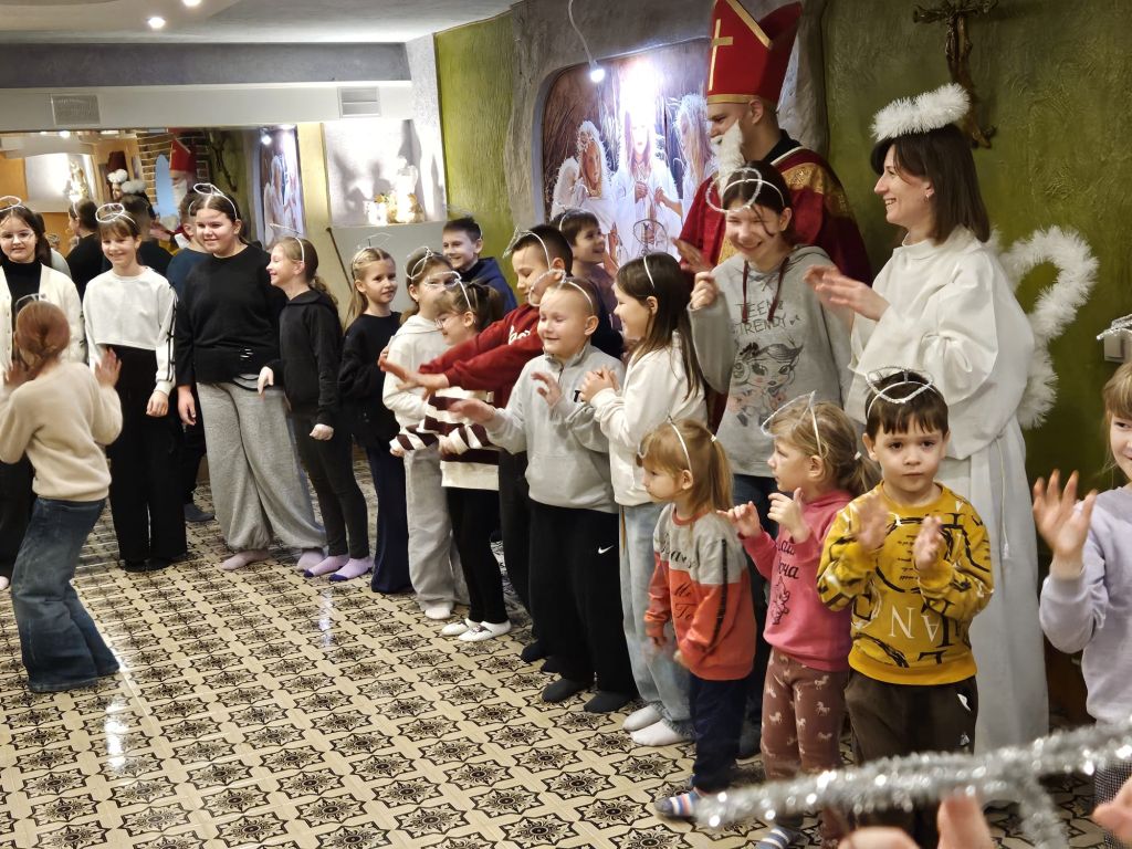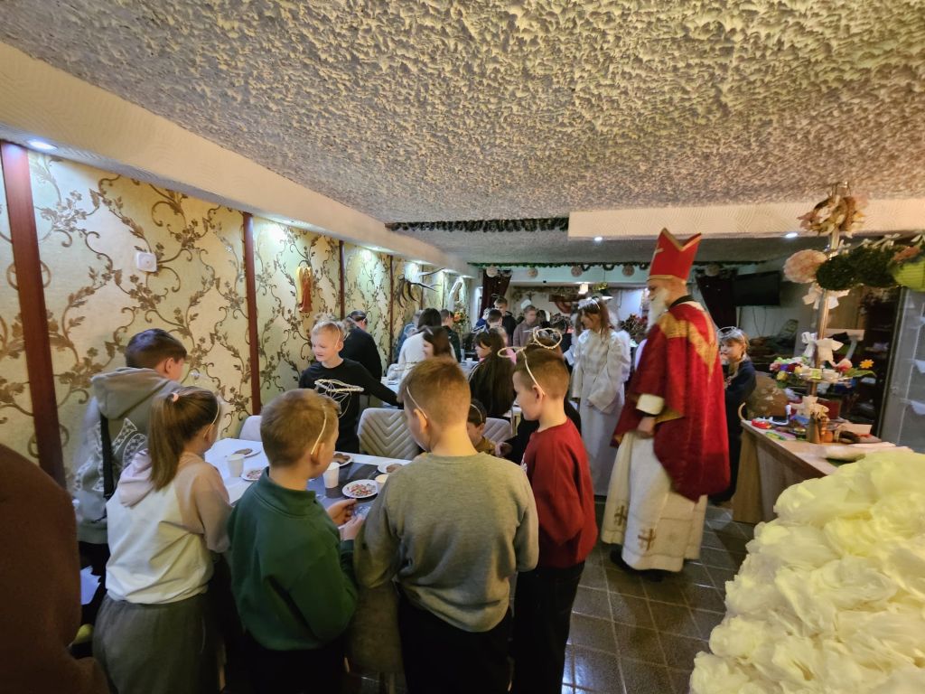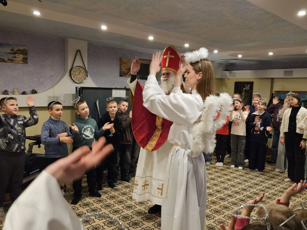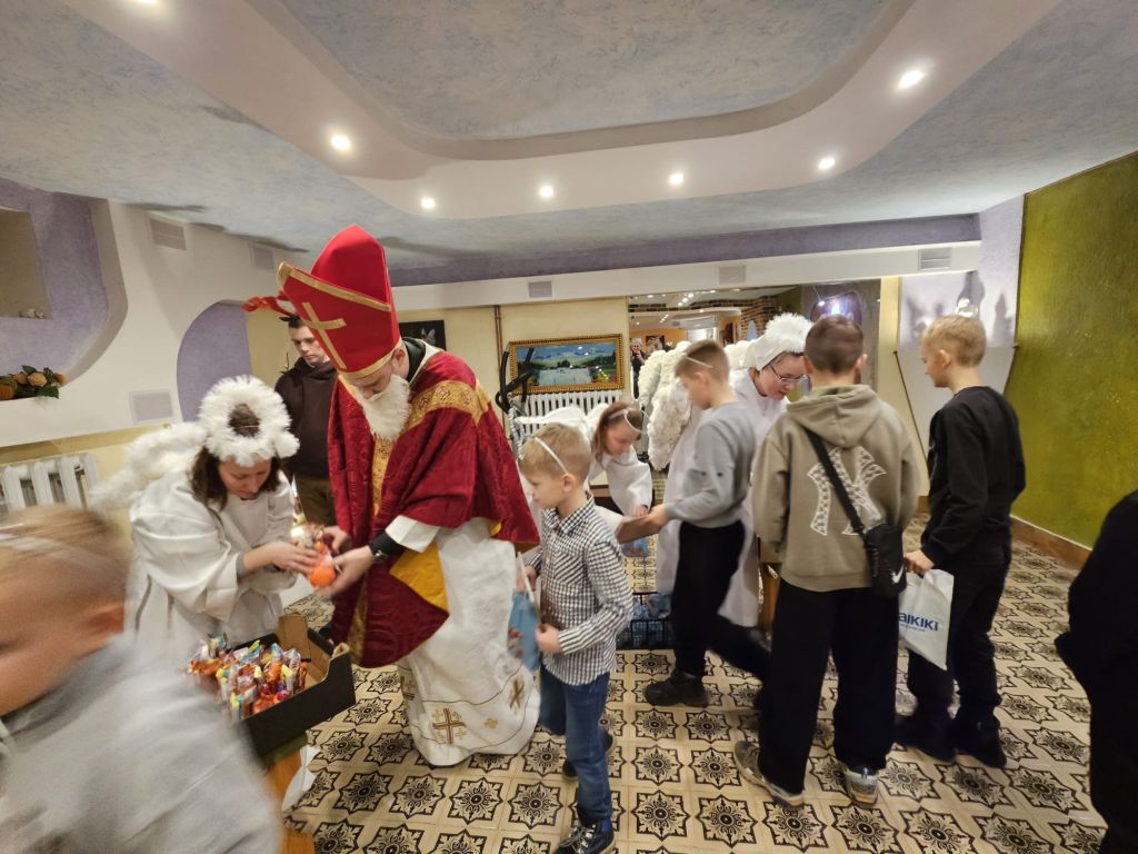 Saint Nicholas in the children’s day-room in Szydłowicze, Belarus, 6 December 2025