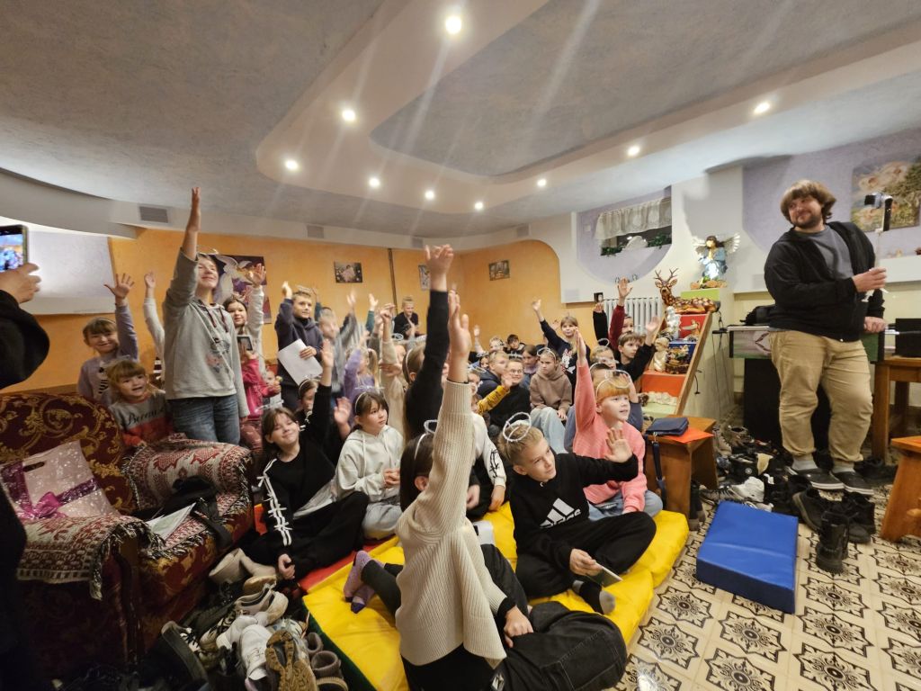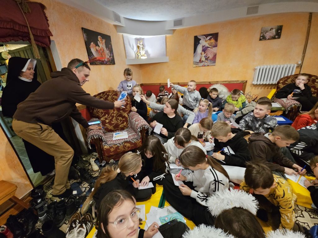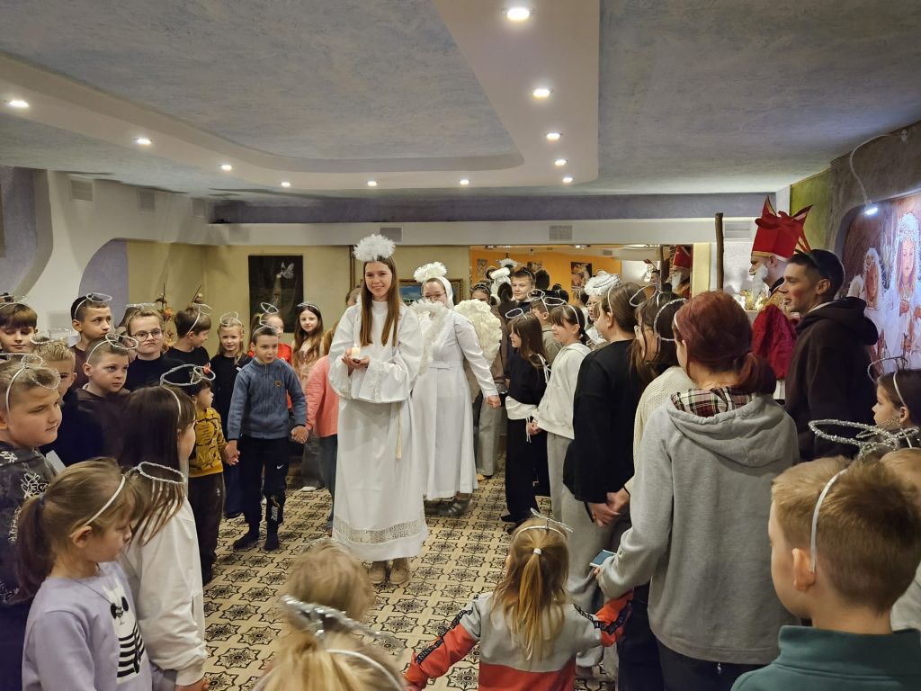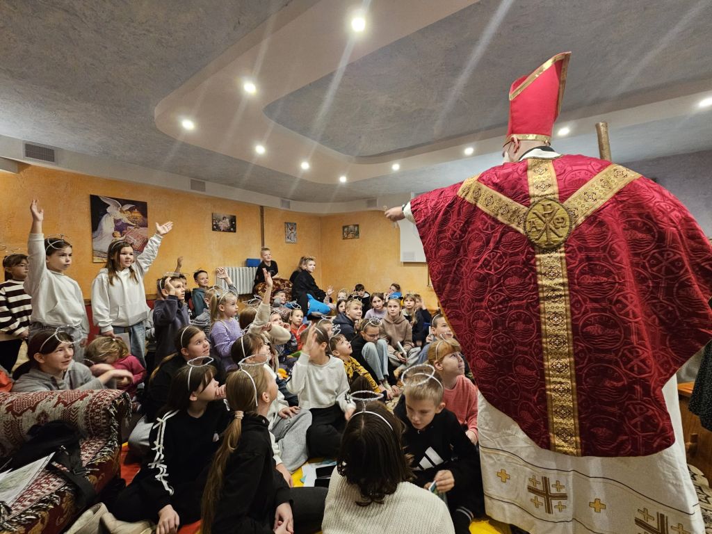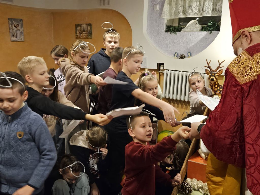 Saint Nicholas in the children’s day-room in Szydłowicze, Belarus, 6 December 2025